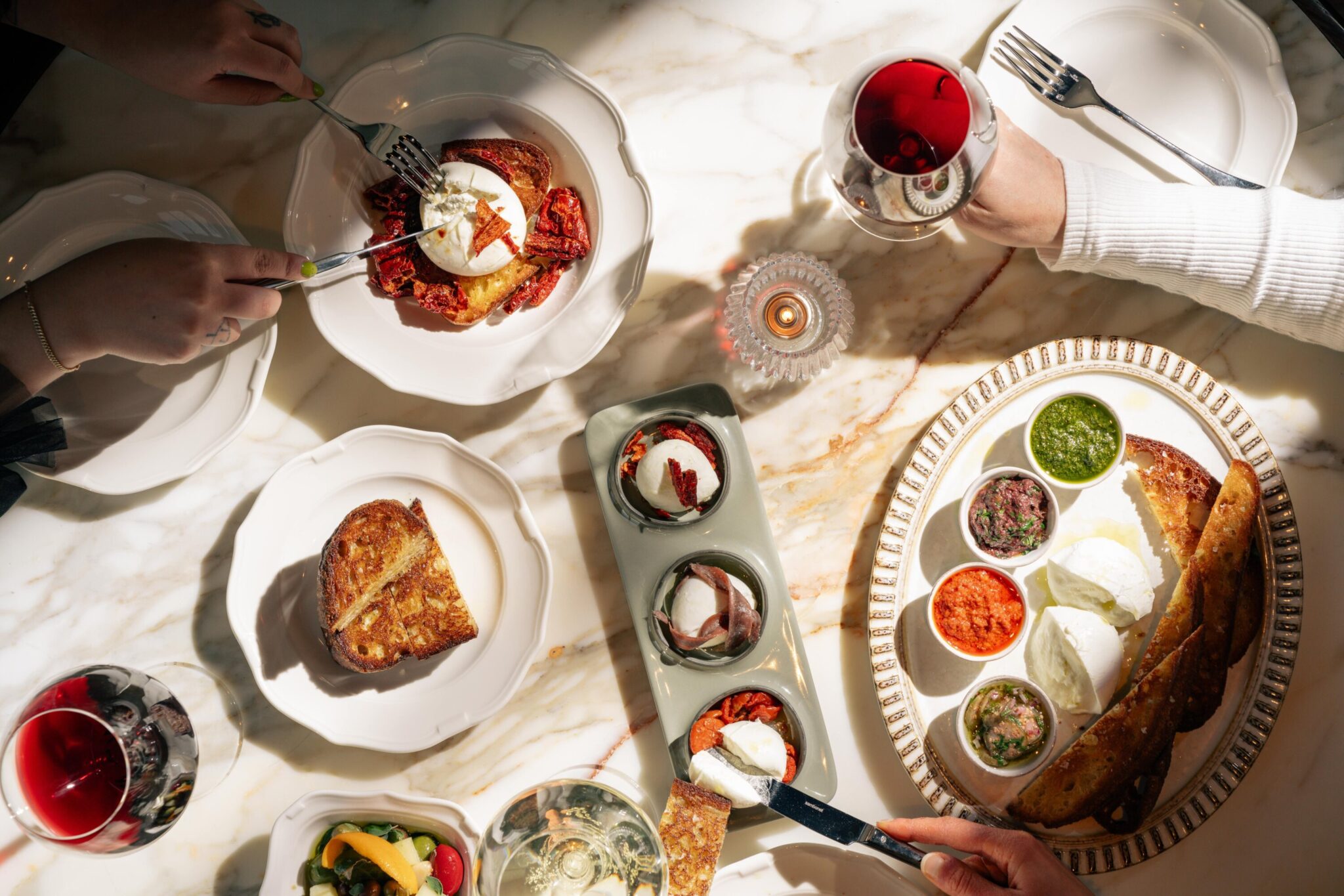 The menu also features a number of salads, including Nancy’s Caesar. Her famous deconstructed version of the classic is basically dressed lettuce accompanied by a fancy toast layered with garlic aioli, braised leeks, slices of hard-boiled egg, and anchovies. Handmade pastas will include orecchiette with sausage and Swiss chard, and tagliatelle with an oxtail ragu. For “secondi,” look for whole branzino with charred lemon, beef-and-bone-marrow pie, and a grilled porcini-rubbed ribeye. A wood-fired oven will turn out pizzas for lunch, which will launch (along with brunch) in the weeks ahead. To drink: spritzes, negronis, vermouths, and carafes of Italians wines.