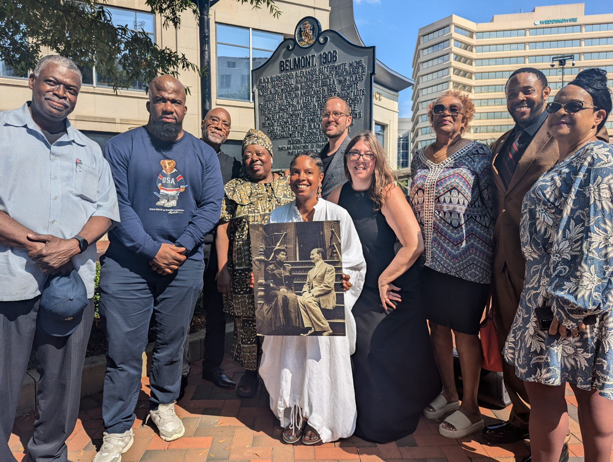 In September, Bender and Flanagan gathered with state officials, community members, and some of the developers’ descendants to unveil a Maryland Roadside Historical Marker that recounts Belmont’s story. The plaque—later installed in its permanent location outside the Heights food hall—points out that “Belmont exemplified the ambition of Washington’s early-20th century Black community and foreshadowed the coming struggle over housing segregation.”