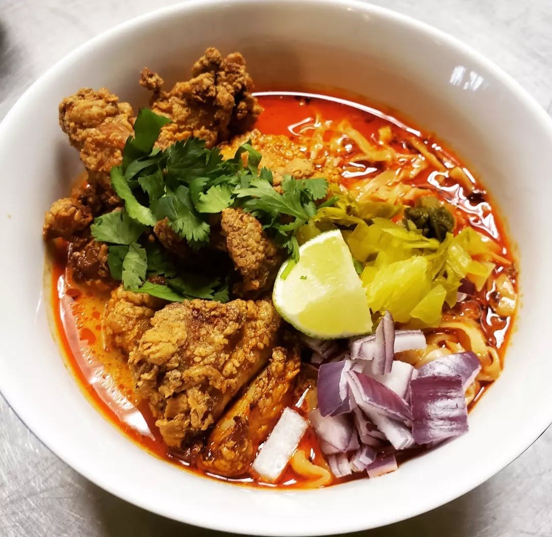 Boonmala had previously worked for chef Alex McCoy’s former Thai pop-up Alfie’s. That led to her first late-night Thai pop-up Toh Roong—short for “night market”— in 2018 at McCoy’s burger joint Lucky Buns. She’s continued to showcase her fiery cooking and noodle dishes at a number of other restaurants over the last seven years, including Elle in Mount Pleasant, where she also worked.