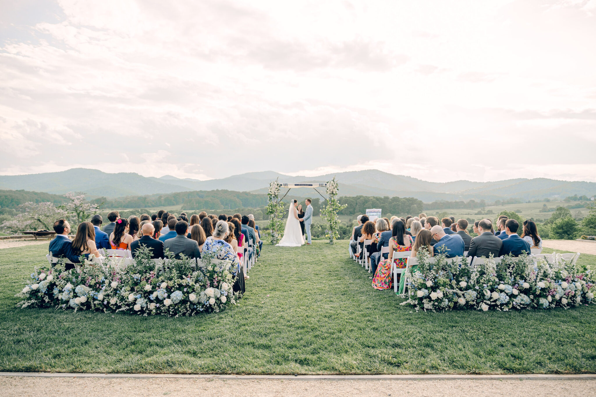 The formal wedding took place on a Friday, so the couple decided to host an even bigger, lower-key party on Saturday, renting out Potter’s Craft Cider and hiring a bluegrass band for the occasion. “We decided to make it “mountain casual” and allow kids, with taco and pizza trucks instead of a seated dinner, ensuring it would feel very different and more relaxed than our wedding night. It was the cherry on top to a perfect weekend!”
