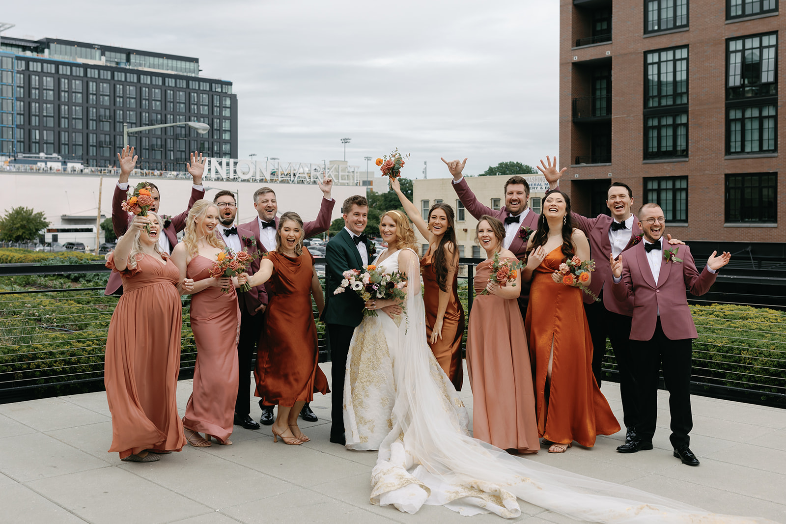 For the florals, the only input they offered was the request for a few magnolias to represent Brenna’s southern roots, and hydrangeas as a nod to Thomas’s family home in Rhode Island. “They nailed it with a gorgeous installation above the ceremony/dance floor and pieces that really popped elsewhere,” they say. For dinner, they chose a family-style meal that included herb chicken, short ribs, pepper gnocchi, and goat-cheese polenta. Before the big day, they treated guests to a trolley tour of the National Mall, and after the reception, they hosted a karaoke afterparty.