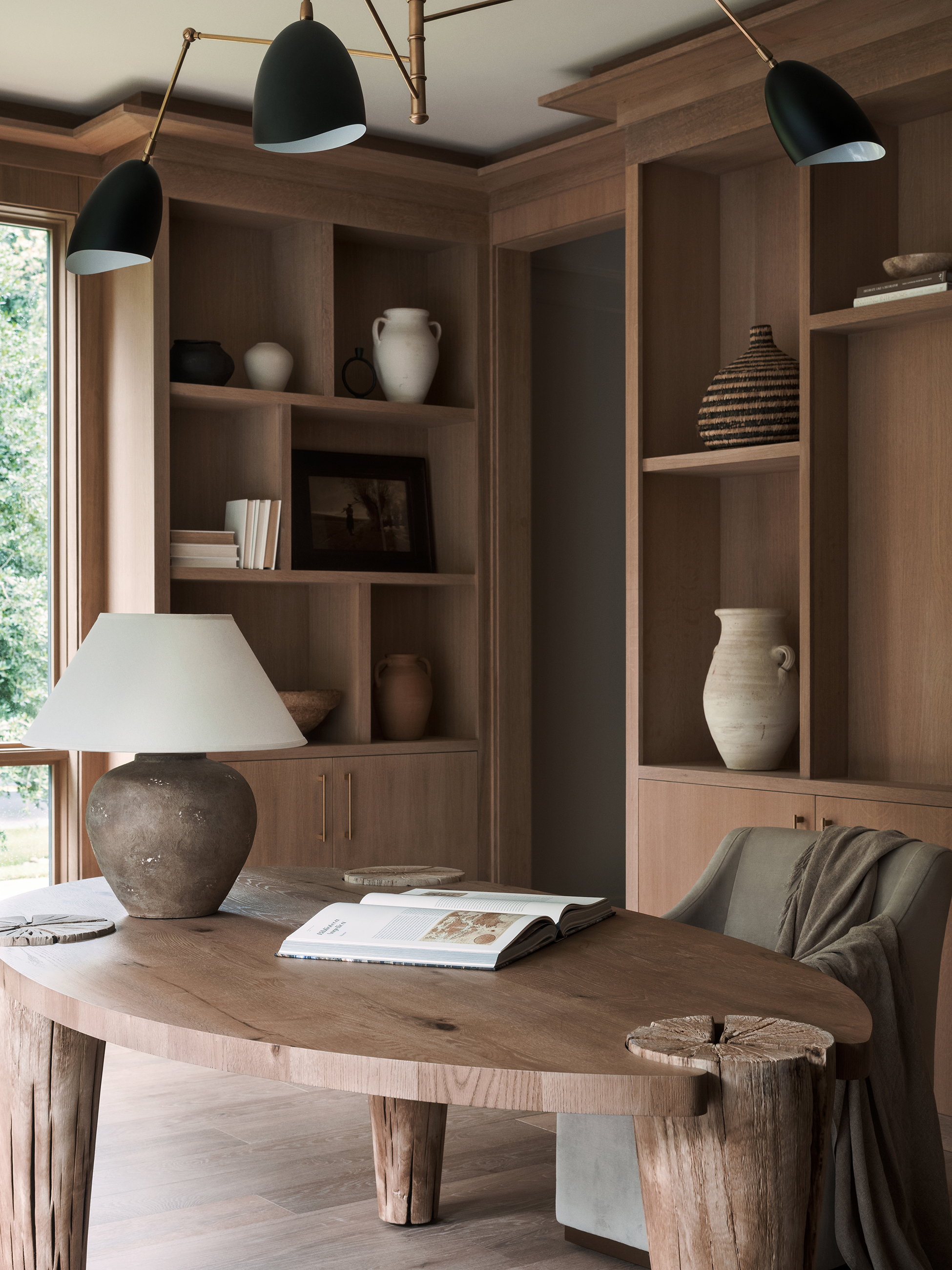 That flexibility extends to the act of working itself. Feldman prioritizes an inviting chair or sofa where a client can read a proposal or work on a laptop, instead of staying tied to the desk. And comfortable seating also means the rest of the family has space to watch TV if the office doubles as an after-hours den.