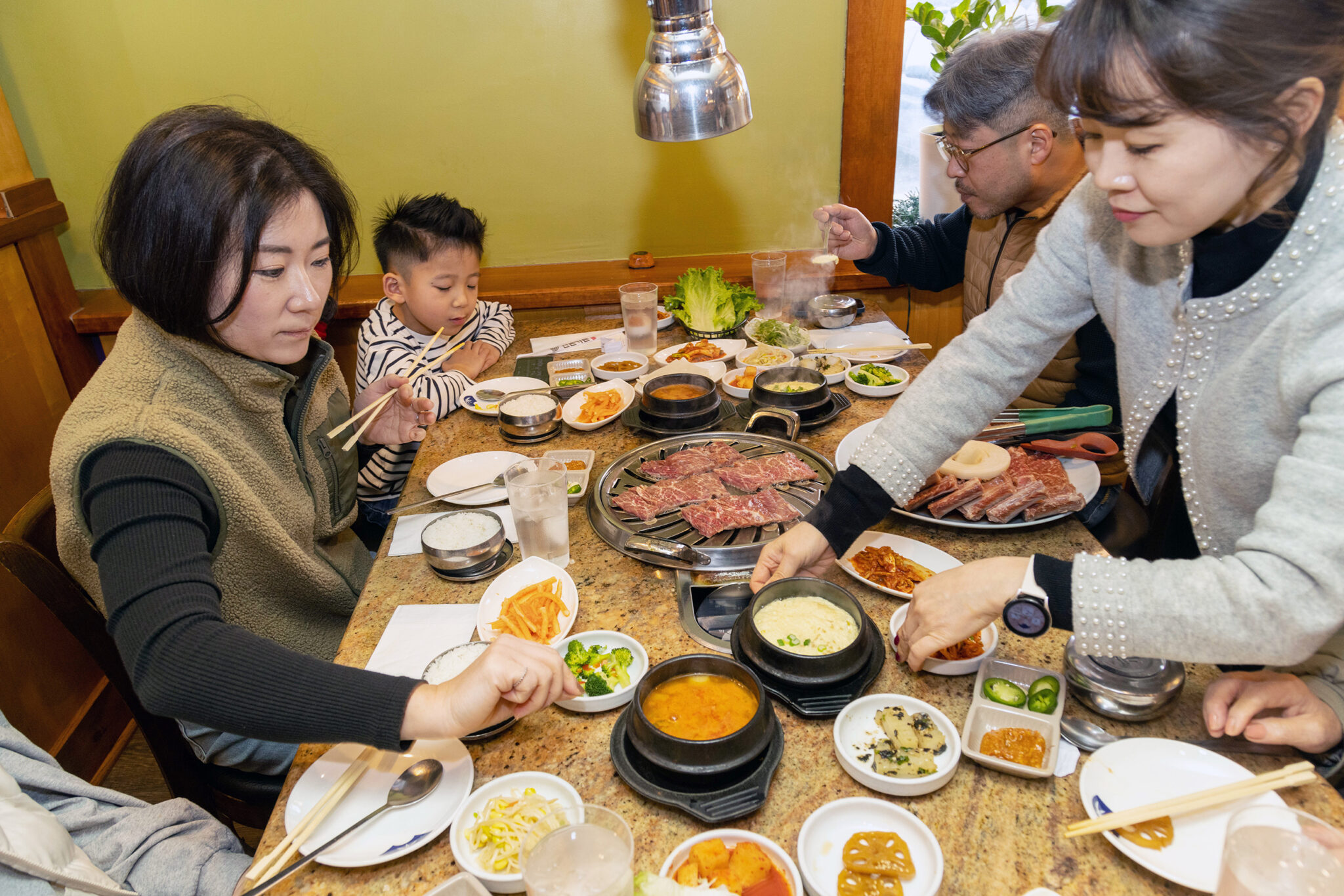 If you have any appetite left—or if this whole tour seems like a bit much and you have time for only one Korean meal in Ellicott City—visit Shin Chon (8801 Baltimore National Pike), which has occupied the same strip mall for more than 20 years. The banchan here are numerous and wonderful. The little plates might come bearing cabbage kimchi, crimson-colored radish salad, sesame-dressed steamed broccoli, soy-drizzled fish cakes, a nest of seaweed salad, or sweet-and-spicy slow-braised potatoes. Barbecue is the most popular way to eat here—order samgyupsal (pork belly) and a server will sauté unsliced kimchi leaves to eat with it in a single juicy, lettuce-leaf-wrapped bite. But the menu runs deep: Braised cod and monkfish stews, sizzling meaty “casseroles,” and fried seafood pancakes are just as worthy of your attention.
