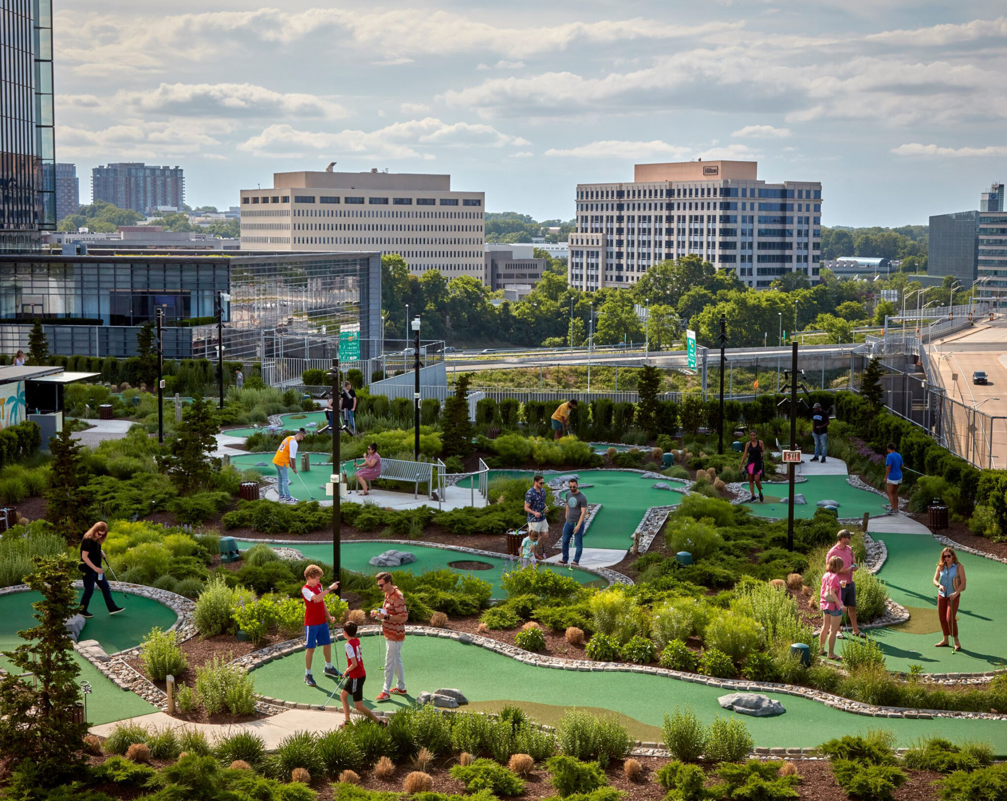 Situated in the rooftop park at Capital One Center, this course is an open-air oasis. The course itself doesn’t feature many novelties, but in addition to the 18-hole circuit, the rooftop has food trucks and a tiki bar where you can sip boozy slushies.