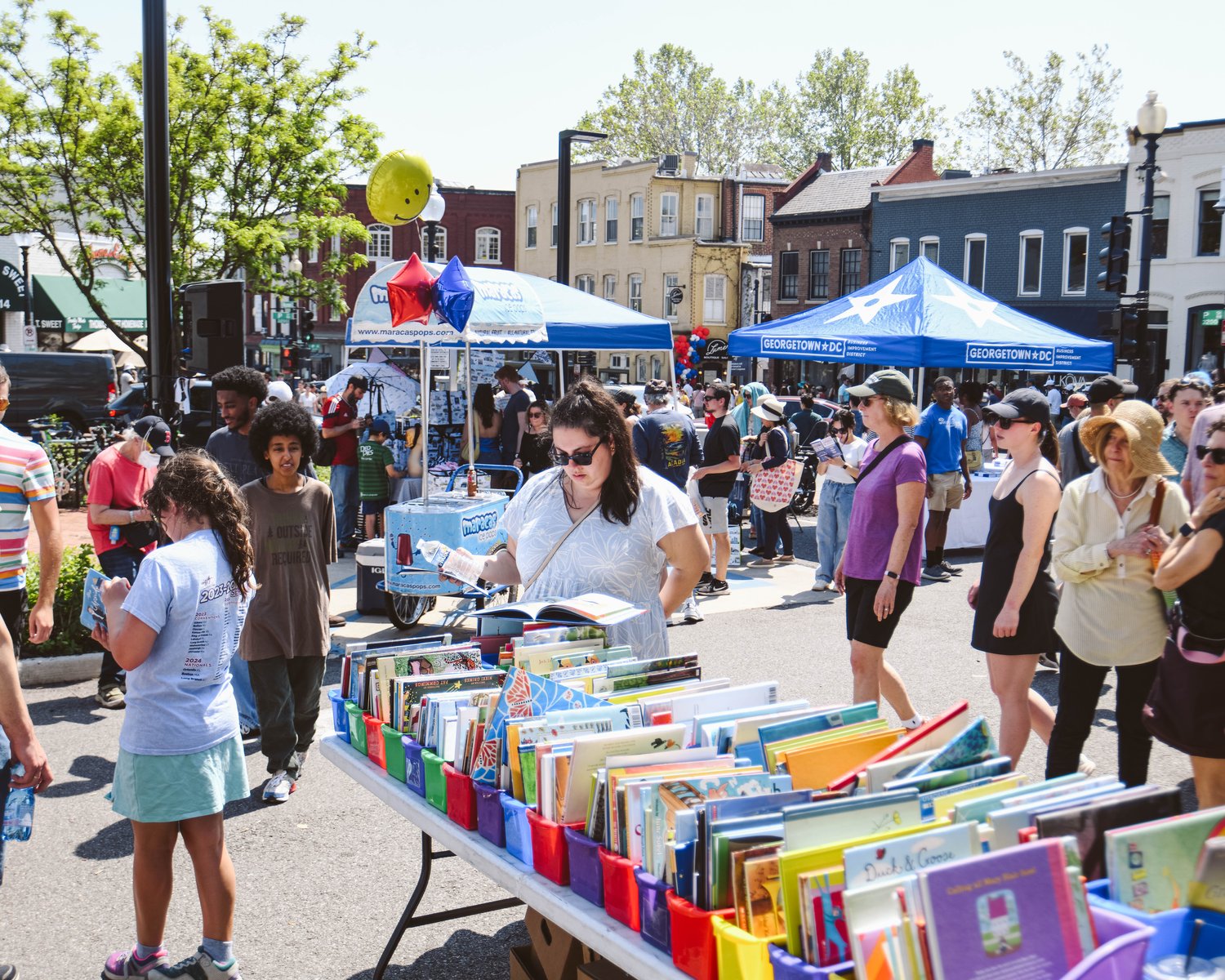 - Georgetown French Market. The bustling Georgetown French Market is back this weekend with French-inspired sidewalk sales and deals from area boutiques, restaurants, galleries, and cafes. Families can experience French culture along Wisconsin Avenue from O Street to Reservoir Road as stilt-walkers, jazz bands, face painters, balloon twisters, and a French unicyclist fill Book Hill at the three-day open-air market. Also, there will be European cuisines to taste, and books and vinyls to browse (Fri-Sun, free, Georgetown).