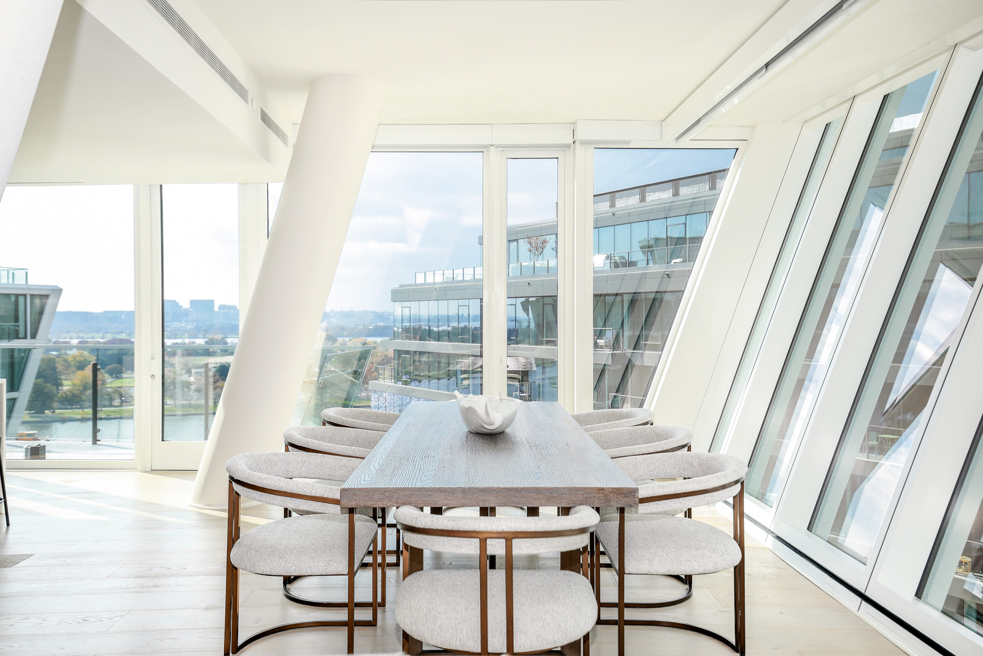 Bragging points: An end-unit penthouse in the Amaris complex, with three bedrooms, three bathrooms, two half baths, two kitchens, and 1,700 square feet of private outdoor space.