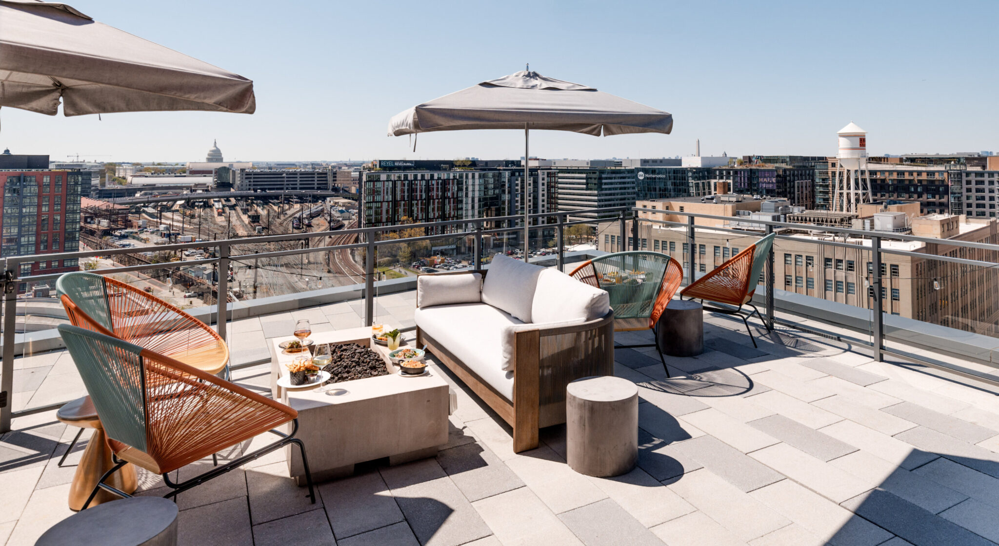 The first of these ventures to open is Sly, located on the Morrow’s rooftop and boasting 360-degree views of the city’s skyline. Samuelsson, an eight-time James Beard Foundation Award winner, Chopped judge, and the name behind iconic New York City restaurants like Red Rooster Harlem and Metropolis, has decked out the new space in rich, jewel-toned hues. The seafood-focused global dishes feature many of the same colors—a celebration, he says, of DC’s “vibrancy.”