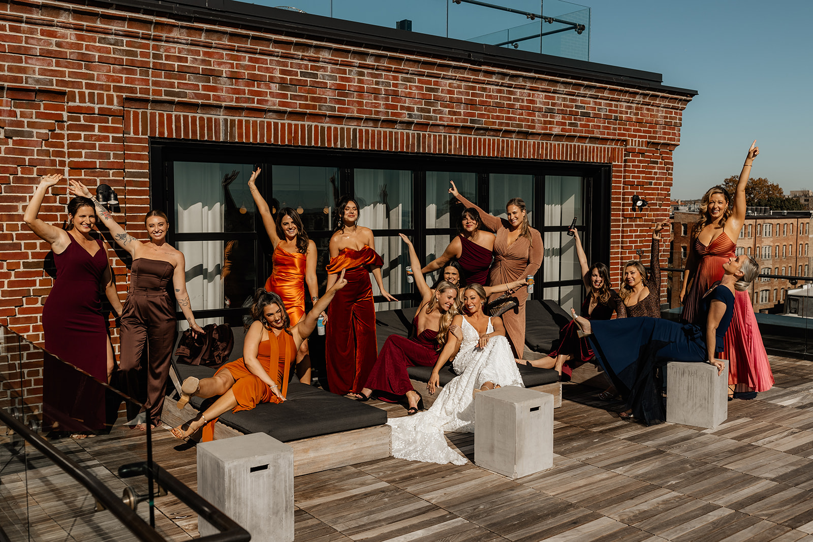 As a special splurge, the couple rented the Monument Suite at the Line Hotel to use for their rehearsal dinner, as the bride and bridesmaids’ getting ready space, portraits on the balcony, and a post-wedding breakfast.