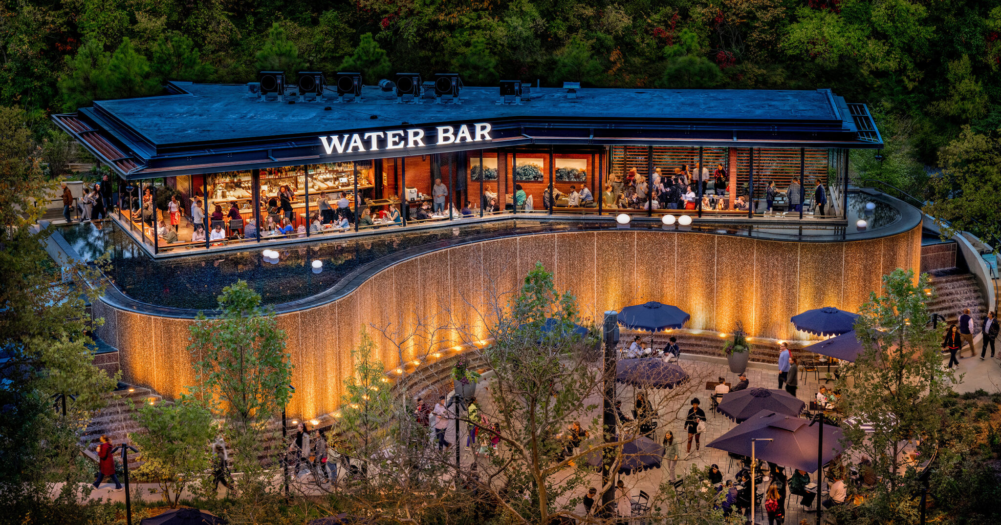 In 2023, when developer JBG Smith reimagined a site next to the Metro as Water Park, the goal was to create an outdoor food hall that would double as a community gathering spot. The park features two full-service restaurants and a smattering of grab-and-go kiosks—including outposts of local favorites Falafel Inc. and Call Your Mother. The pièce de résistance is the Water Bar, which serves local oysters and refined cocktails from its perch atop a massive fountain/water sculpture. Also on the one-acre-plus site: a performance stage and art installations. The park is a “sip and stroll” zone, meaning visitors are free to roam with any alcohol purchased onsite.