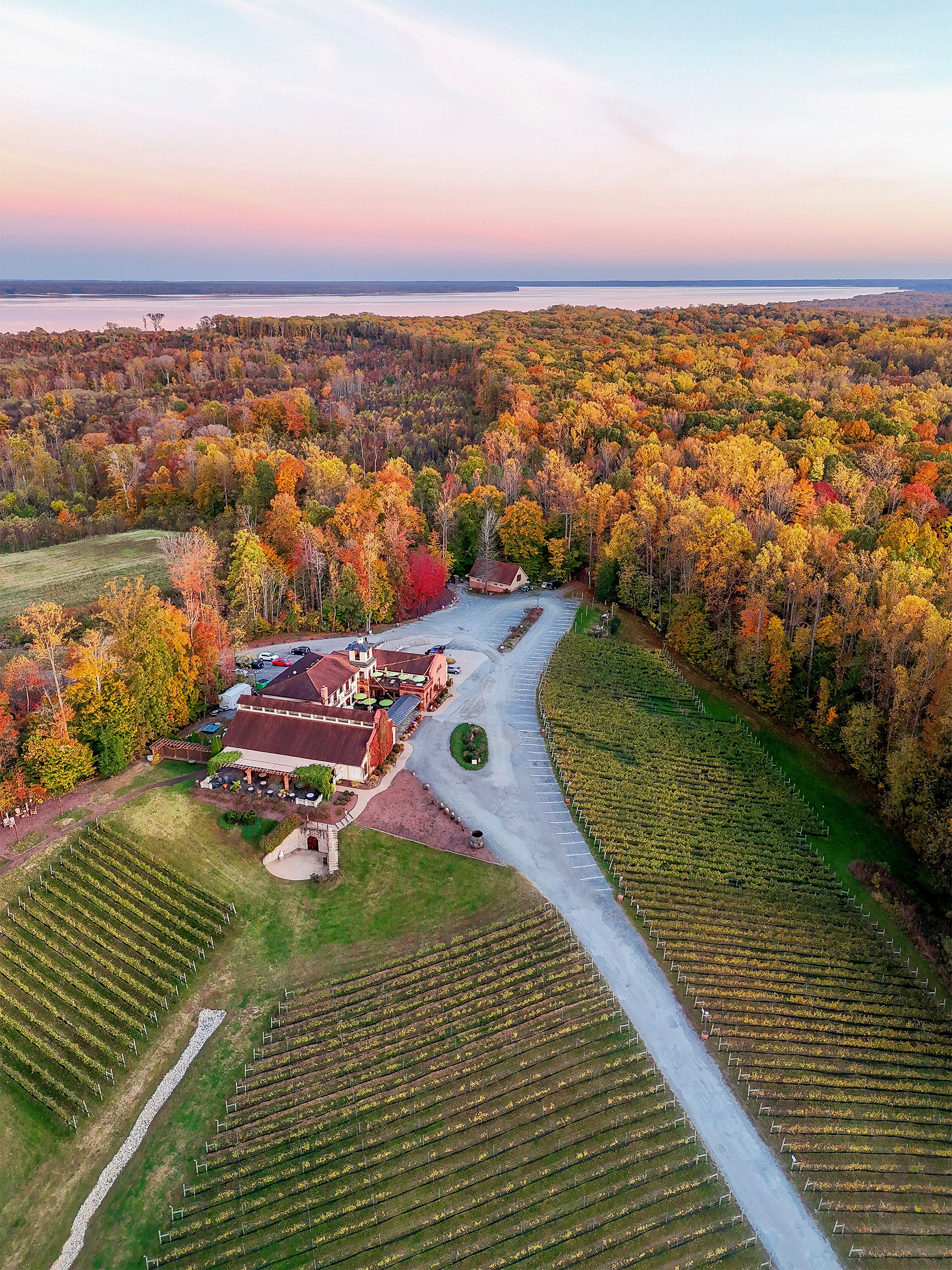 The two-year-old winery in Montgomery County’s Agricultural Reserve has a bistro serving dishes with autumnal ingredients from area farms, but on a crisp fall day, take your glass and snuggle up by the stone fire pits in the courtyard.