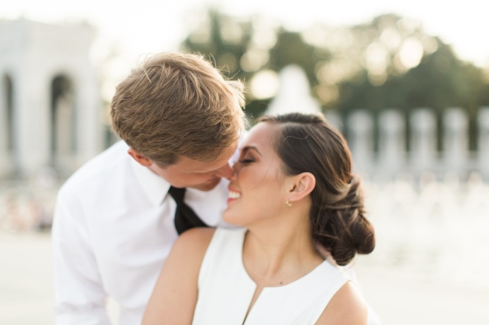 Weddings Engagement Photos: Casey Linsey and Travis Wells This couple got engaged at the World War II Memorial, where they also ended their first date. Bride & Groom, Engagement Photos, Engagements | Dec 5, 2014