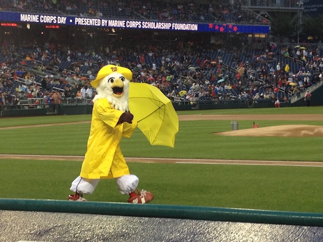 News & Politics What to Wear in a Rain Delay: Just Ask Screech The Nationals mascot displays fetching fashion sense. Capital Comment, Sports | May 9, 2013