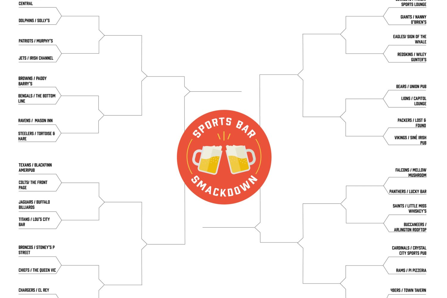 News & Politics Sports Bar Smackdown: NFC Edition Vote now for the best DC-area sports bar to catch your favorite NFC team on game day. Sports, Sports Bar Smackdown, Bracket | Sep 27, 2017