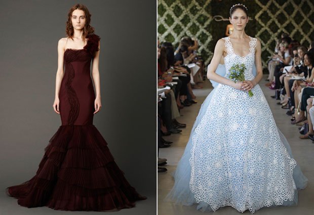 Weddings Bridal Fashion Trend Report: Colorful Wedding Gowns Wary of white? Designers are offering up bolder-hued options for brides who dare to be different. Bride & Groom, Fashion, Gowns, Trend Alert | Jul 23, 2012