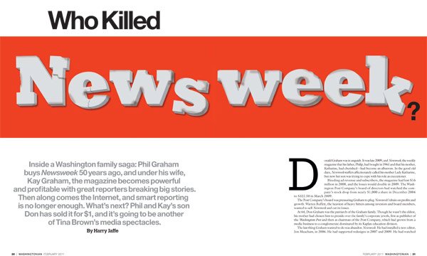 News & Politics Who Killed Newsweek? Sold for $1, the venerable weekly is about to become one of Tina Brown's media spectacles. People | Jan 27, 2011