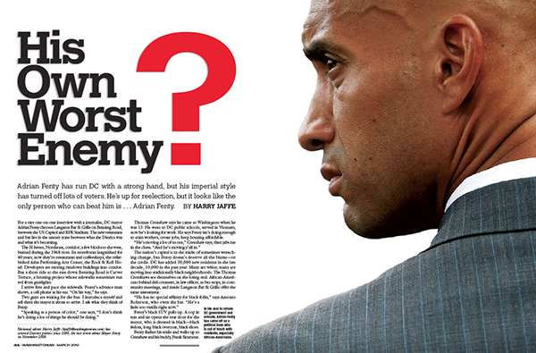 News & Politics Adrian Fenty: His Own Worst Enemy? Adrian Fenty has run DC with a strong hand, but his imperial style has turned off lots of voters. He’s up for reelection, but it looks like the only person who can beat him is . . . Adrian Fenty. People | Mar 1, 2010