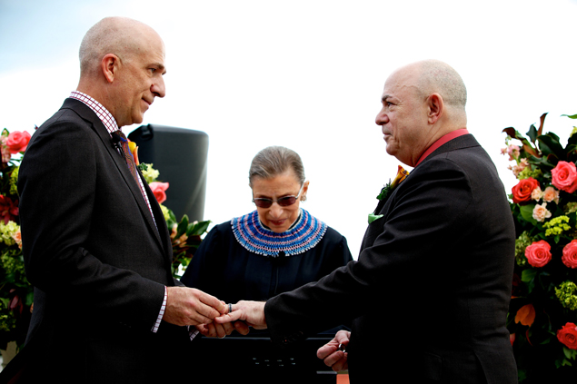 Weddings Real Wedding: David and Michael Justice Ruth Bader Ginsburg officiated the wedding of the “Washington Post” food writer and his partner. Bride & Groom, Real Weddings | Nov 13, 2013