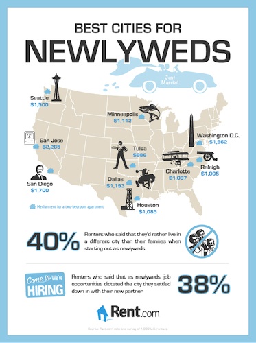 Weddings DC Ranked as One of the Top Cities for Newlyweds Rich cultural life and high annual incomes were cited as the main positive factors, according to a Rent.com survey. Bride & Groom, Wedding News | May 20, 2013