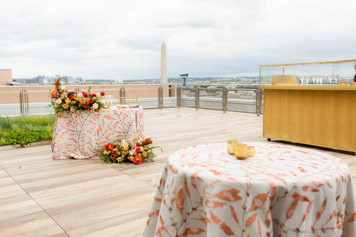 An Intimate Rooftop Wedding Featuring a Peach and Orange Color Scheme at the Spy Museum