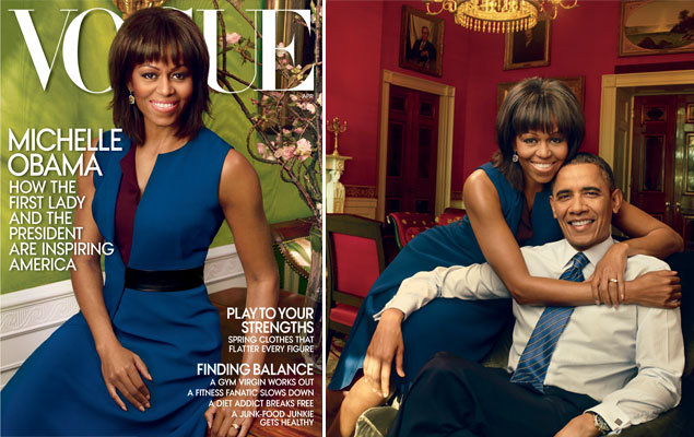 Shopping Michelle Obama Appears on the Cover of “Vogue” for the Second Time Wearing a striking sleeveless dress, the First Lady dishes with the President in the magazine’s April issue. Shop Around, Michelle Obama | Mar 14, 2013