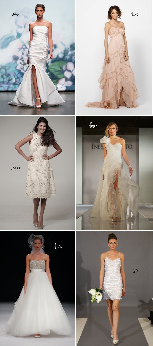 Weddings Vote For Your Favorite New Wedding Dress: The Semifinals (Round Two) The winners of our last dress polls battle for the championship slot. Bride & Groom, Fashion | Nov 4, 2011