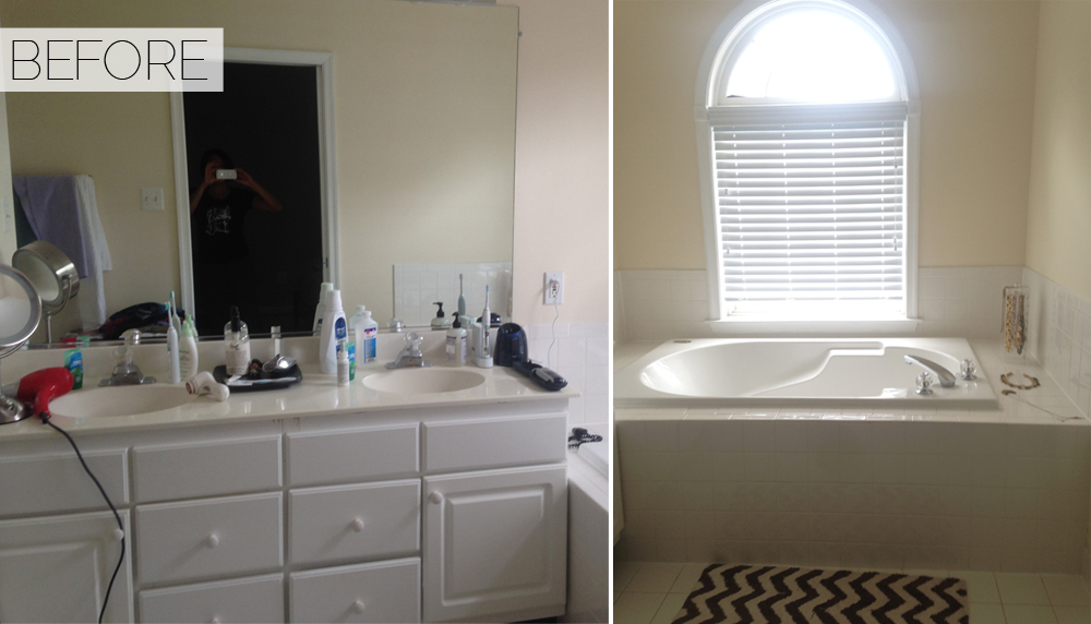 Home & Style Before & After: See This Basic Bathroom Go Glam This room takes a chic turn with mixed metals, glossy subway tiles, and a marble-top vanity. Open House, Home Design, Remodeling | Apr 1, 2015