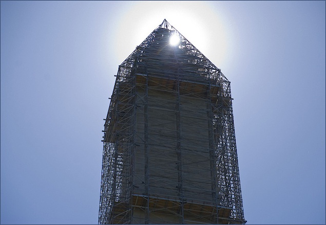 Things to Do Washington Monument Lights Up Monday Night The scaffolding covering the monument will be lit tonight and remain illuminated until 2014. After Hours, Miscellaneous | Jul 8, 2013
