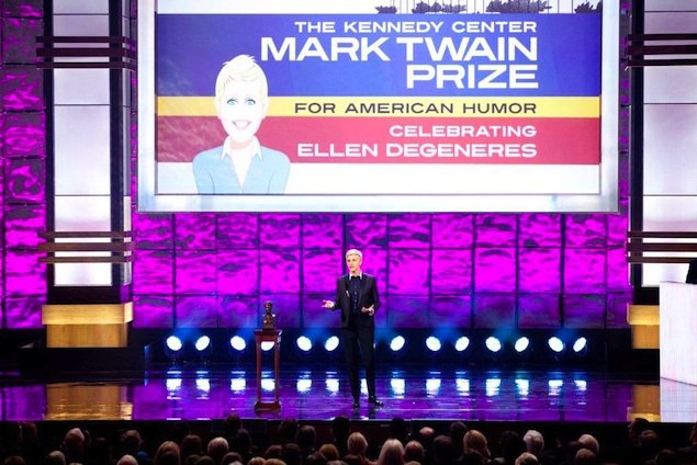 Things to Do Ellen DeGeneres Receives the Mark Twain Prize at the Kennedy Center The performer was feted by a troupe of fellow performers, including Jimmy Kimmel, Jason Mraz, and Jane Lynch. After Hours, Comedy | Oct 23, 2012
