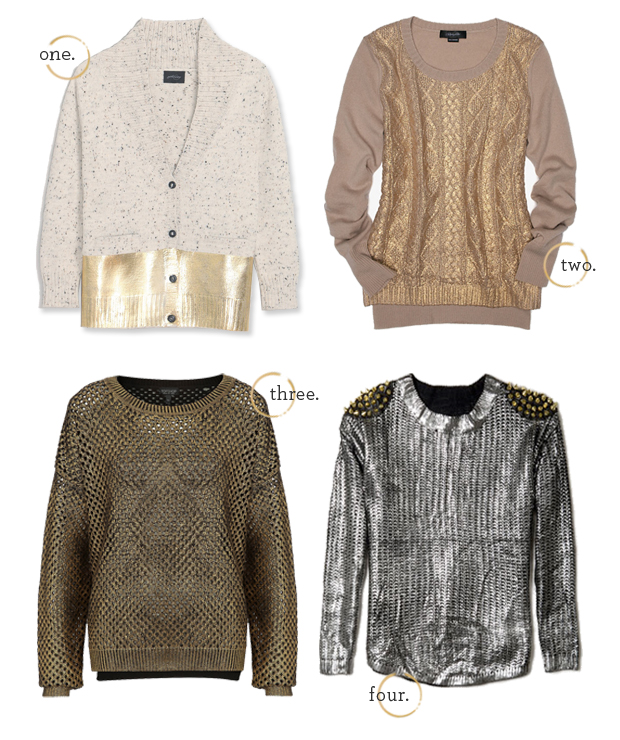 Shopping Trend Spotting: Metallic Foil Sweaters Shine on in one of these cozy, opulent knits. Shop Around, Shopping | Jan 8, 2013