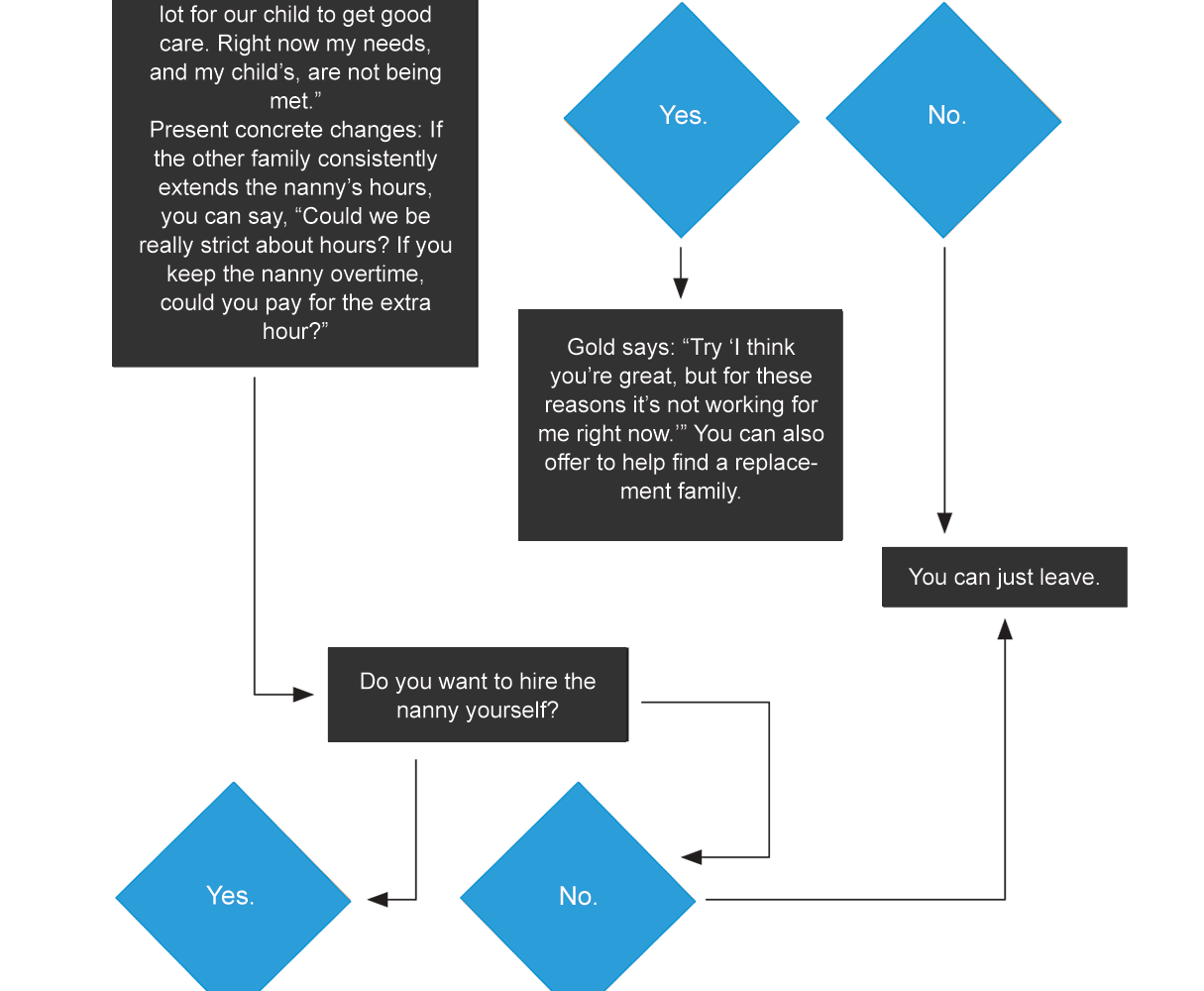 News & Politics How to Fix or Leave Your Nanny Share A flowchart to help you with a major childcare dilemma. Work & Family | Aug 3, 2015