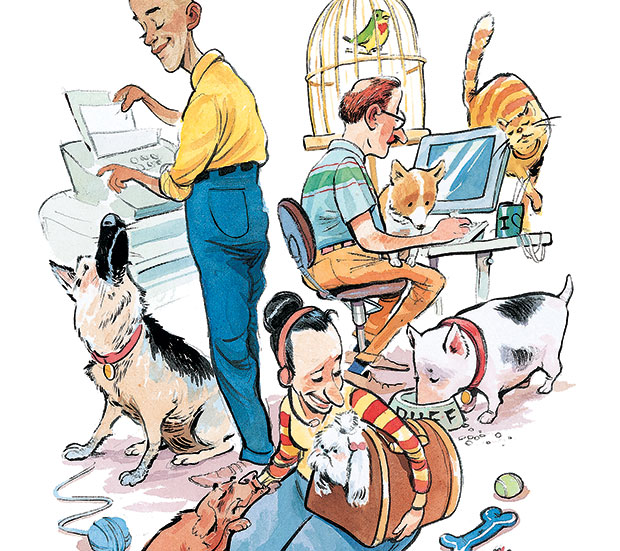News & Politics Working Like a Dog Bringing a pet to the office can reduce stress, improve relationships, and make a workplace more fun. Work & Family | Jun 10, 2014