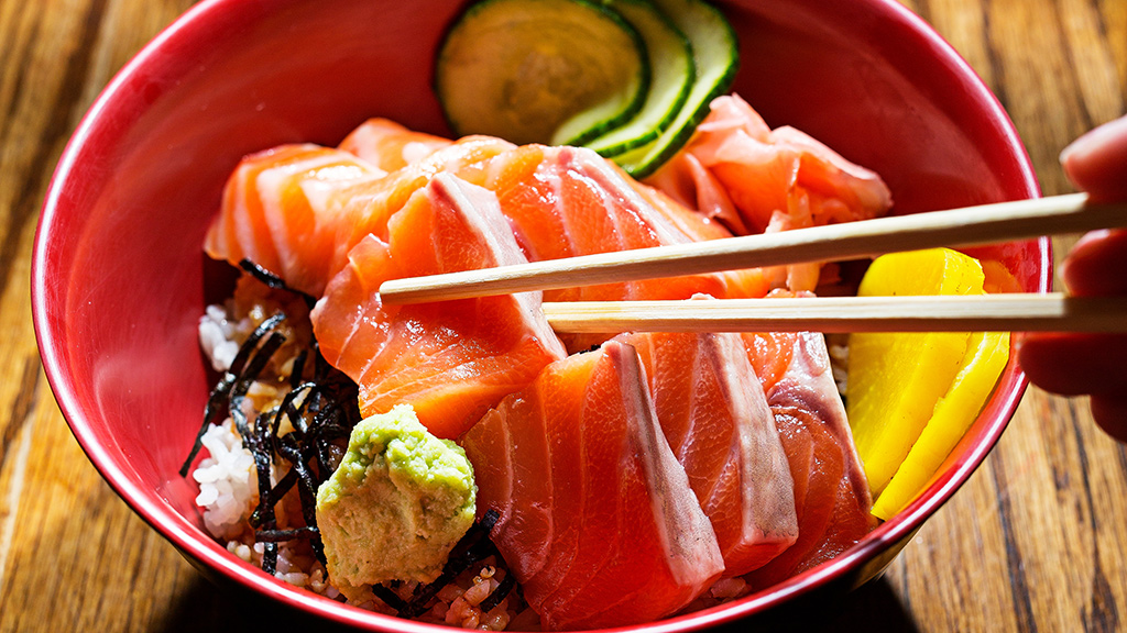 Salmon sashimi bowls at Donburi. Photo by Scott Suchman.