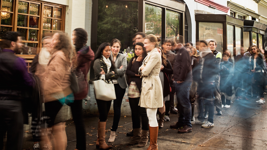 The line outside the red-hot Filipino eatery Bad Saint. Photograph by Scott Suchman.