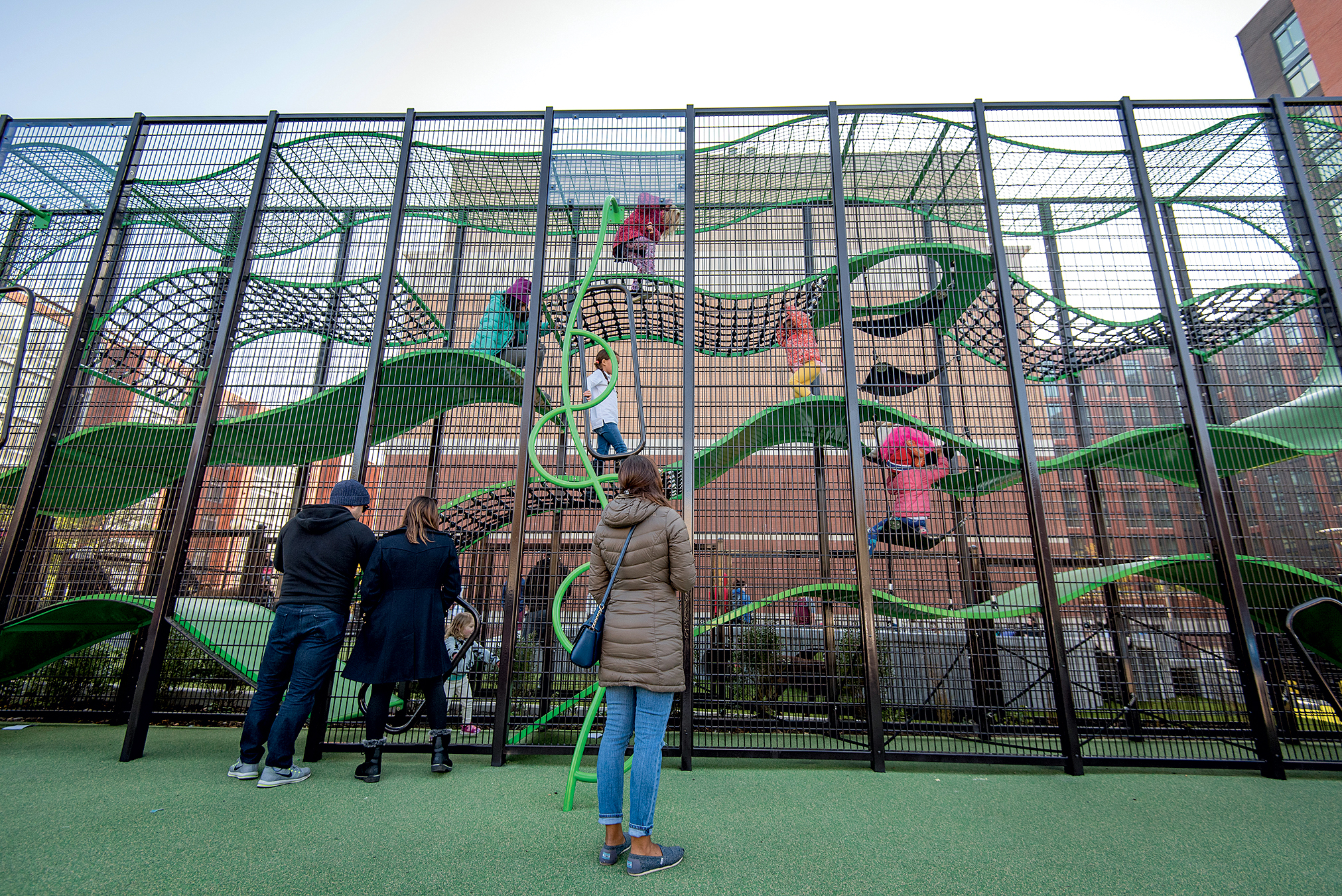 Named for what was once a 19th-century Irish neighborhood near the Capitol, Swampoodle Park has a section for dogs and another for children. On a relatively small parcel, it packs in both a dog agility structure and a “Wall-holla”: a Dutch-designed, vertical, maze-like structure for kids. (There are only six in North America.)