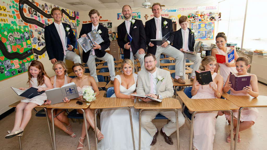 Weddings The Reason This Maryland Couple Posed for Wedding Pics in a Classroom is Just Too Cute Maryland, Summer Wedding, Maryland Wedding, Pink Wedding | Jul 11, 2016