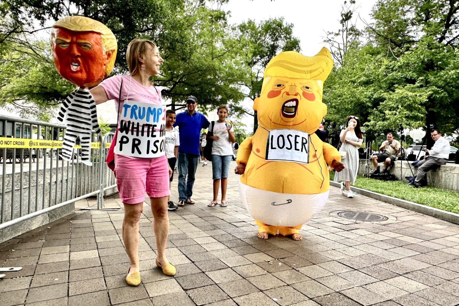 News & Politics Trump’s Arraignment: The Scene Outside the DC Courthouse Hundreds of people gathered—some waving signs or flags, others sporting costumes. Donald Trump, arraignment | Aug 3, 2023