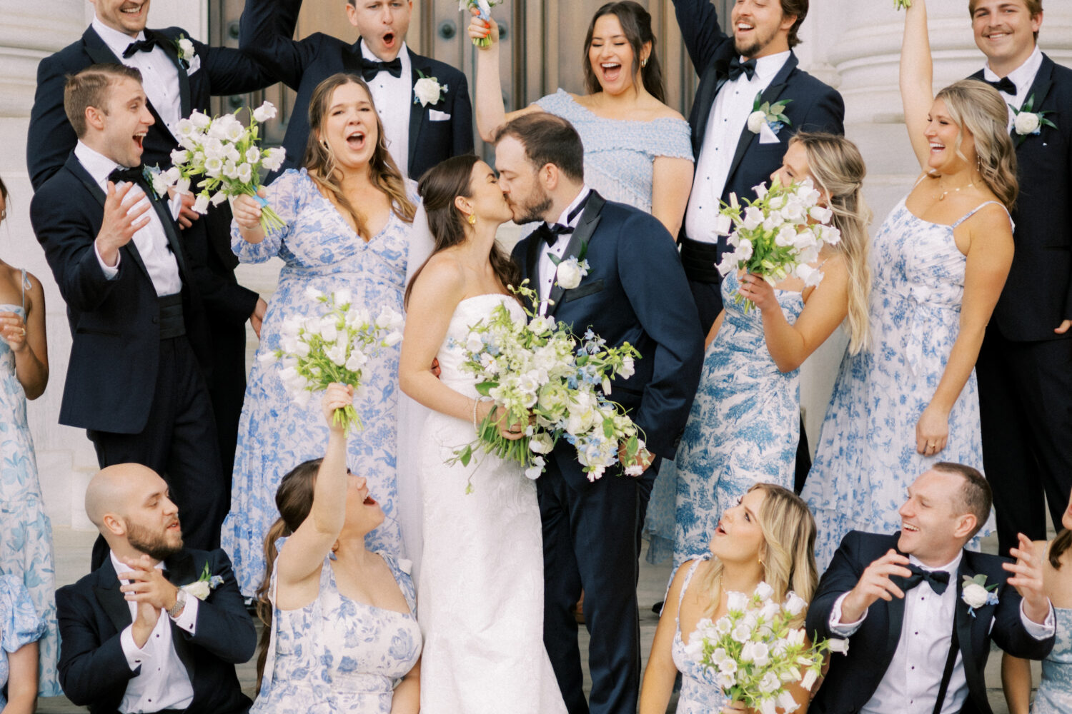 Weddings A Blue-and-White Garden-Party Wedding at DAR With Monument Views Highlights included chinoiserie vases, floral bridesmaids dresses, and a golf-themed escort display. Blue and White Wedding, DAR wedding | Sep 25, 2024