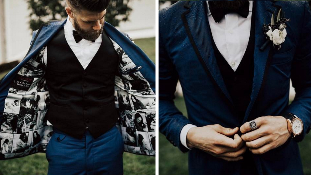Weddings Bryce Harper Lined His Tuxedo Jacket With Photos of His Bride on Their Wedding Day The company that created the suit opens at the MGM National Harbor later this month. Washington Nationals, Nationals, Bryce Harper, Celebrity Weddings | Jan 12, 2017