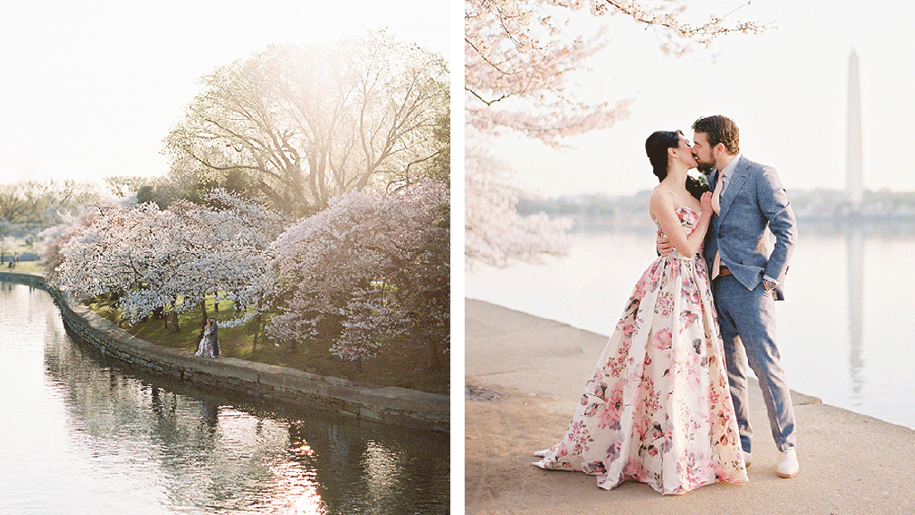 Weddings This Bride’s Floral Dress was PERFECT for a Cherry Blossom Wedding at the Tidal Basin DC Wedding, Outdoor Wedding, Cherry Blossoms, Spring Wedding | Mar 31, 2017