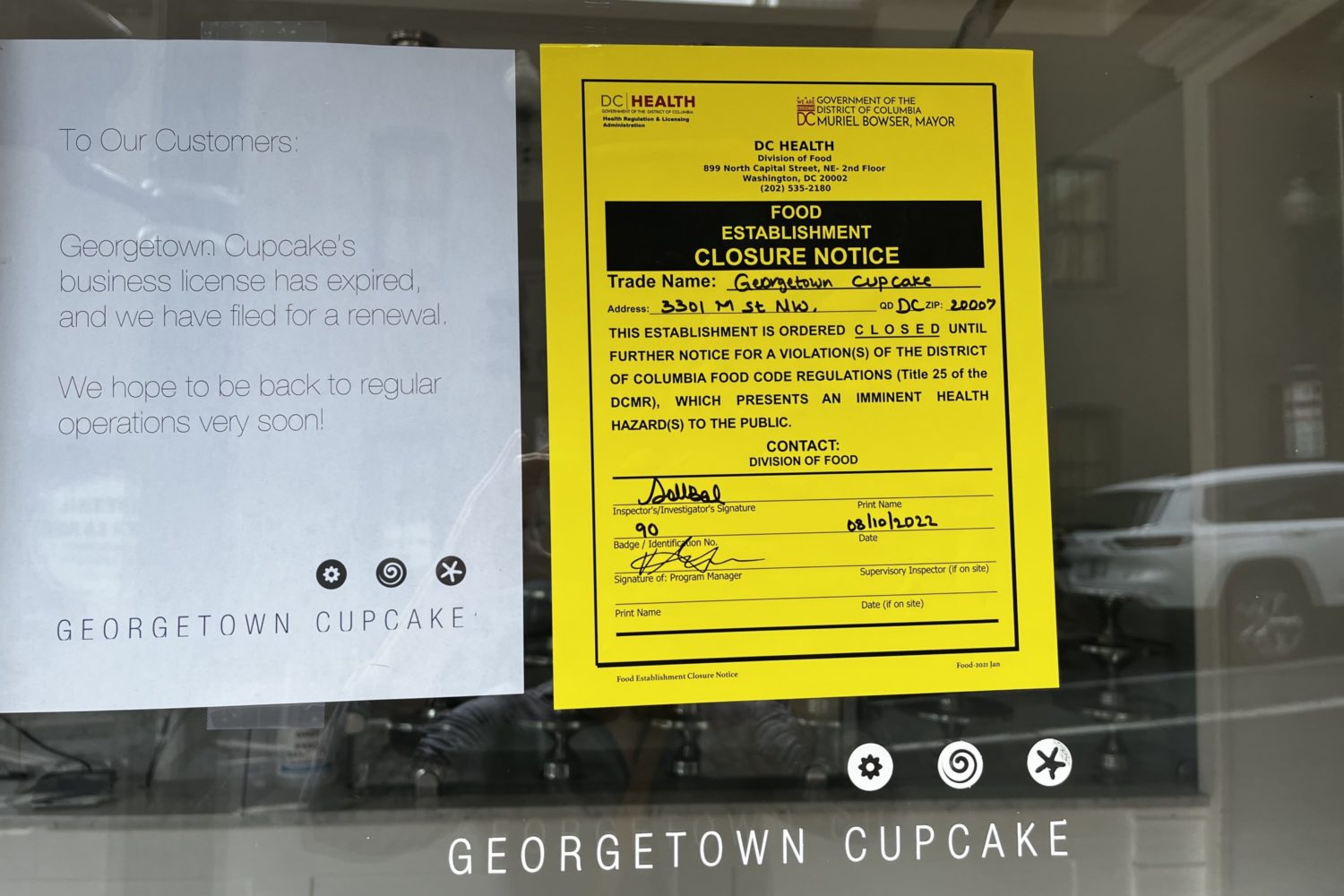 Food | News & Politics Georgetown Cupcake Shut Down by DC Health Department The company says an expired business license is behind the closure. Georgetown Cupcake, health department | Aug 11, 2022