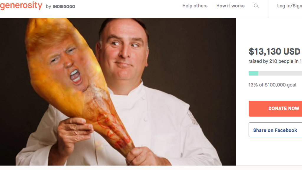 Food Money Crowdfunded for José Andrés’ Legal Fight Against the Trump Hotel Went to Immigration Charity Instead Jose Andres, Trump Hotel, Indiegogo, Jorge Guajardo | Sep 19, 2016
