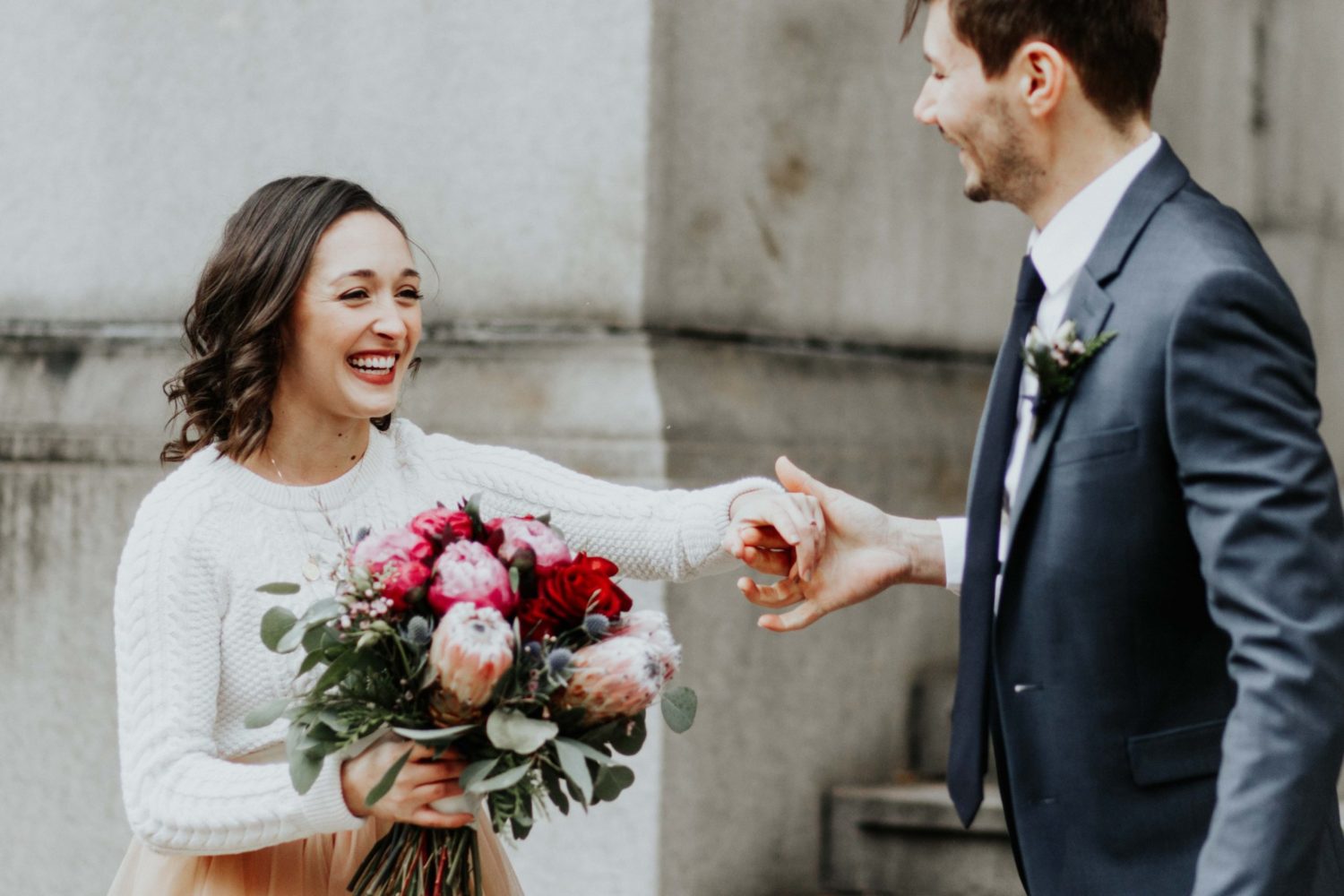 Weddings No Proposal, No Ring: They Got Engaged at a Halloween Party While Dressed as Juno and Paulie Bleeker Sara Nicoles and Jacob Cooley eloped to Mitchell Courthouse in Baltimore in October of 2017. real wedding, elopement, Baltimore Wedding, Fells Point | May 17, 2018