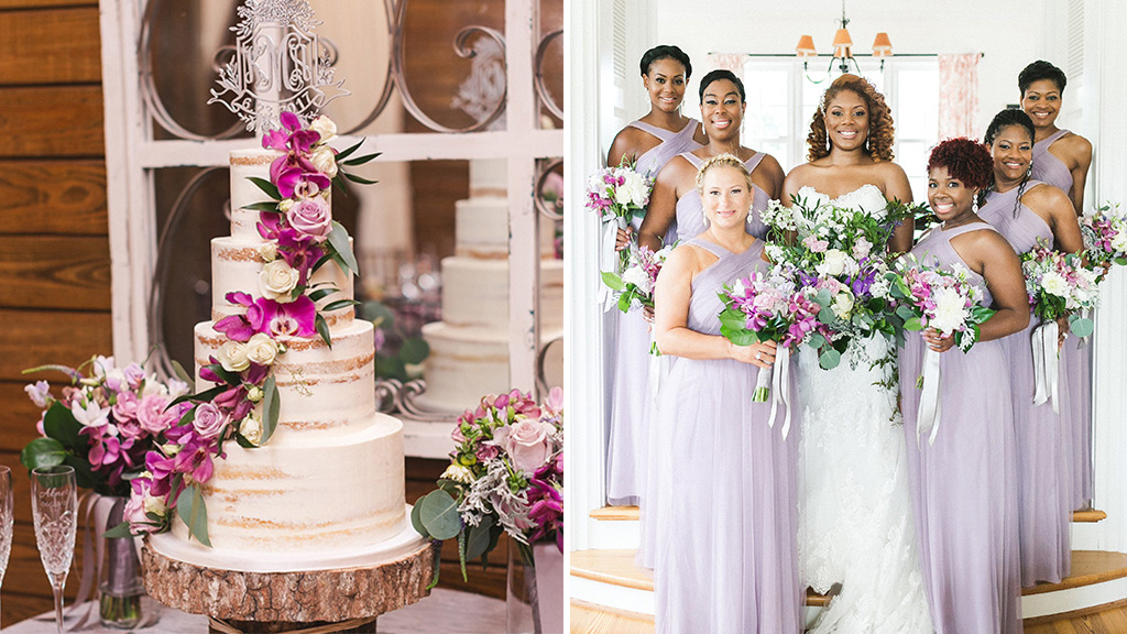 Weddings Lavender Bridesmaids Dresses and an Orchid-Covered Cake Gave a Virginia Wedding a Glamorous Touch Kristen King & Abner Maisonable wed in June of 2017 at Mount Ida Farm in Charlottesville, Virginia. Virginia Wedding, Summer Wedding, Rustic Wedding, real wedding | May 16, 2018