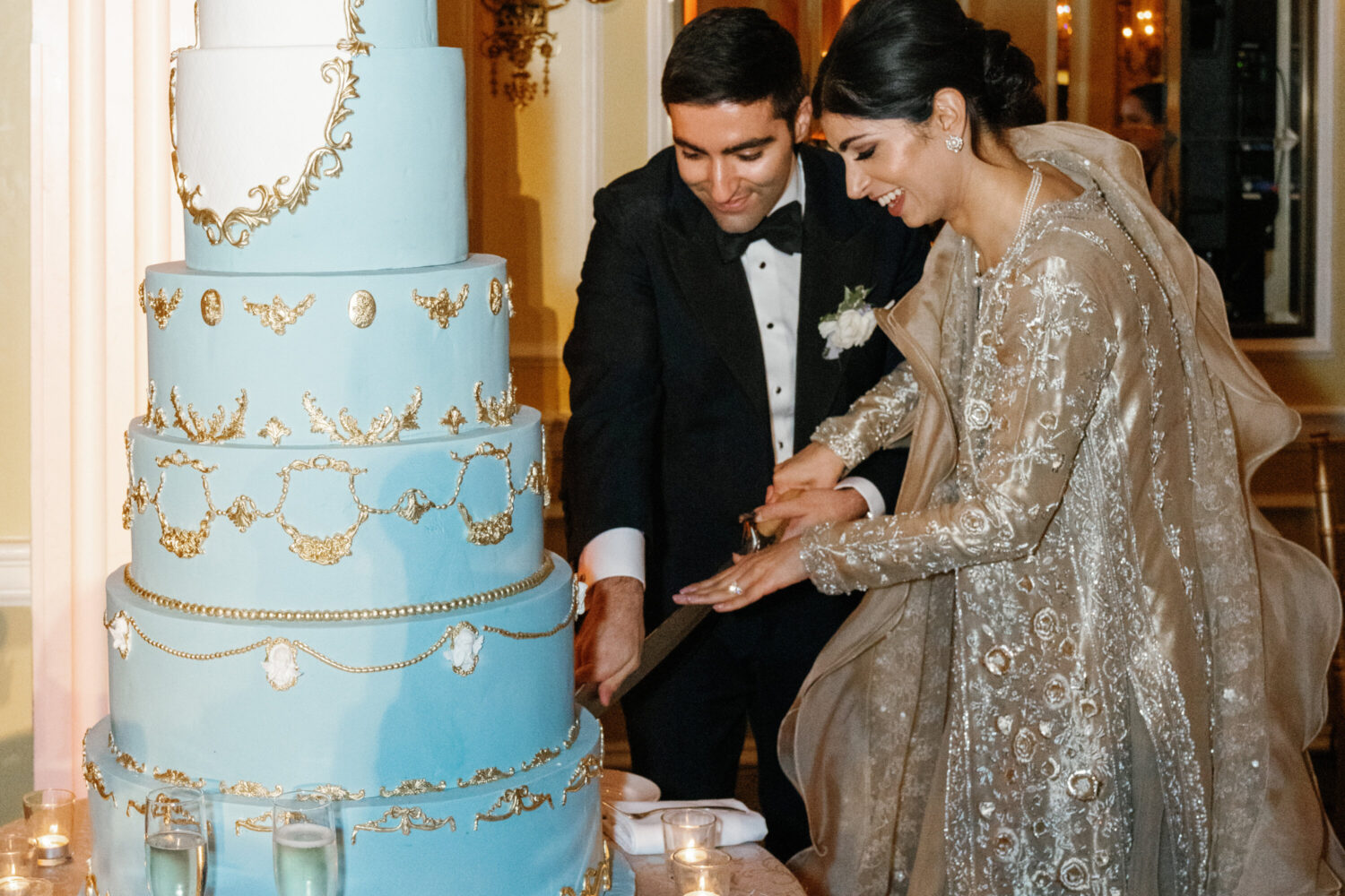 Weddings This French-Blue and Gold Wedding Was Inspired by Versailles and the French Baroque Period The seven-tier cake was a regal finish. Real Weddings, Real Weddings 2024 | Aug 28, 2024