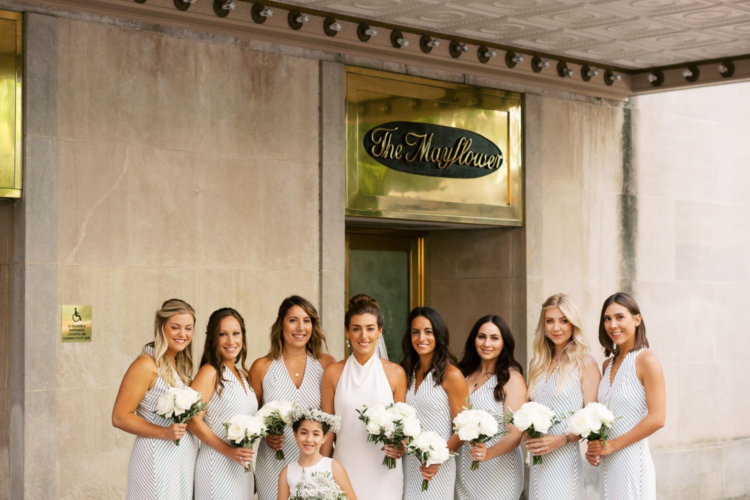 Weddings Fashion at This Mayflower Hotel Wedding Included Striped Bridesmaids Dresses and a Halter Bridal Gown Kate and Chase married on September 7, 2019 with an indoor "rustic elegance" theme. The Mayflower Hotel | Mar 2, 2021