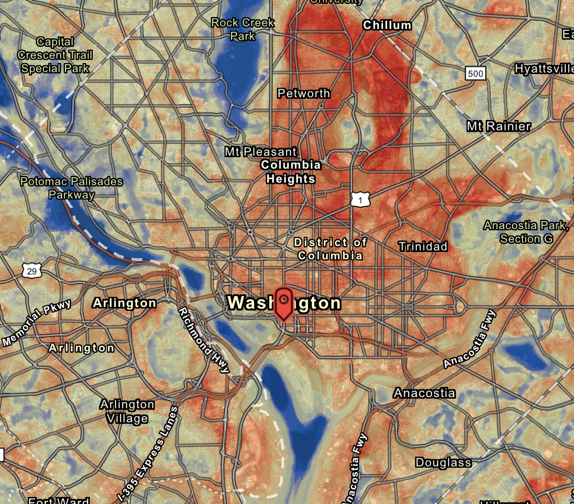 News & Politics It’s 95 Degrees in DC Today. But Some Neighborhoods Here Will Feel More Brutally Hot Than Others Five parts of the city that could be classified as "urban heat islands." Weather, Washington DC | Jun 29, 2021